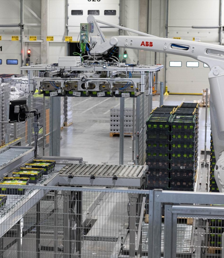 Maxima LT logistikos centre įdiegta automatizuota Equinox sistema jau optimizuoja sandėlio veiklą – šviežių produktų rūšiavimas vyksta greičiau ir efektyviau.