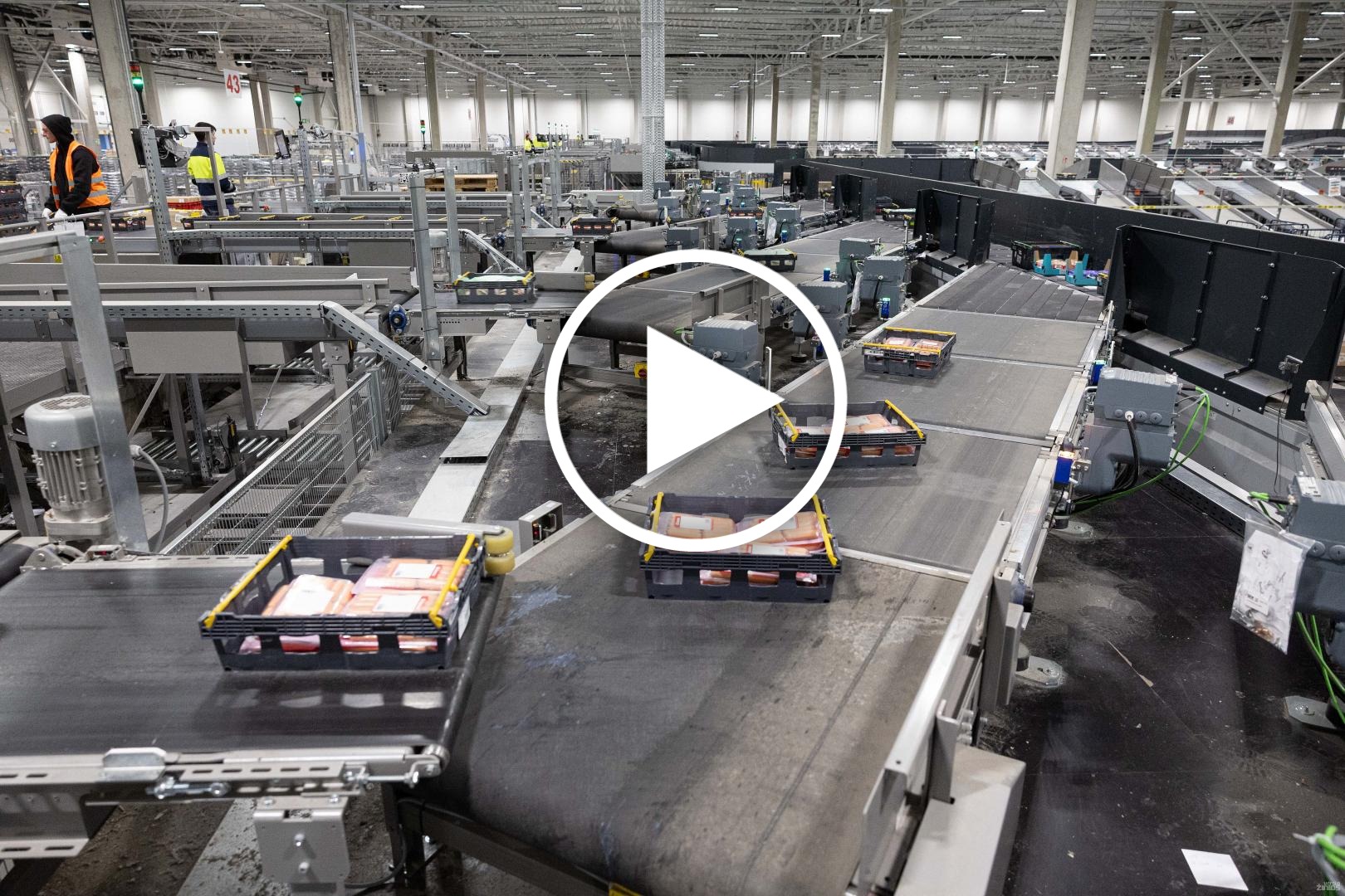 Šeši operatoriai aptarnauja rūšiavimo sistemą prie siuntų padavimo į sistemą. Jie deda prekes ant siuntų padavimo konvejerio. Taip siuntinys spiraliniu konvejeriu tiekiamas į rūšiavimo sistemą. Šis sprendimas leidžia perduoti 10 000 siuntų per valandą.